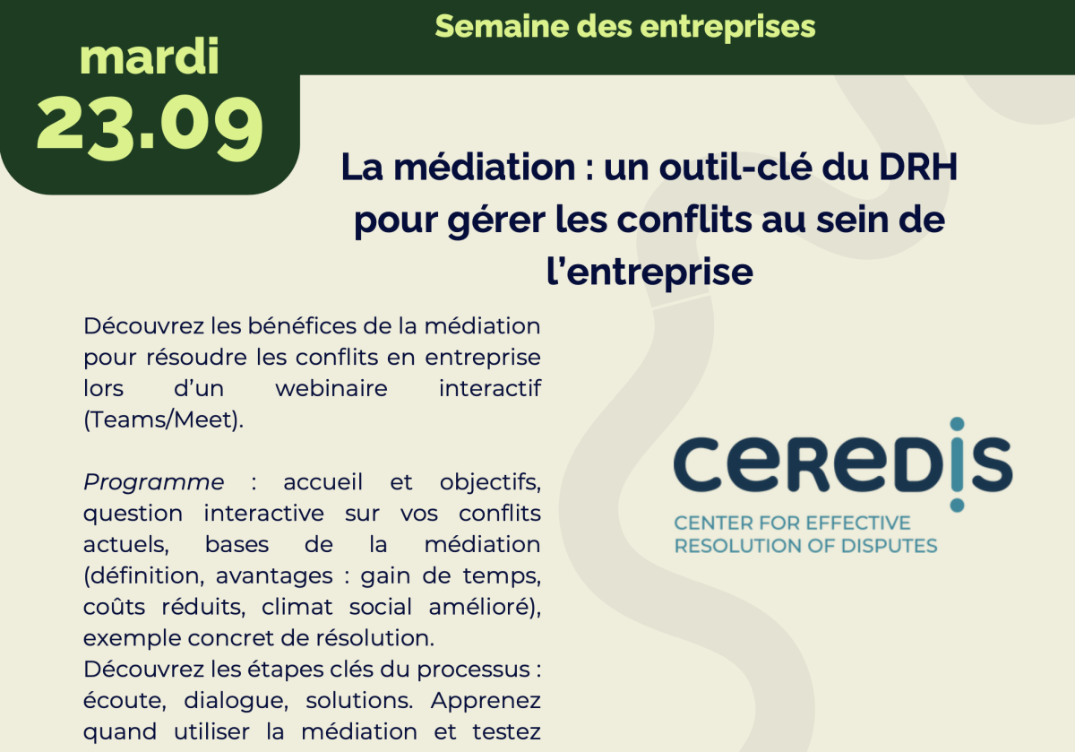 Semaine de la médiation pour les entreprises 2025 : suivez les workshops de CEReDis !