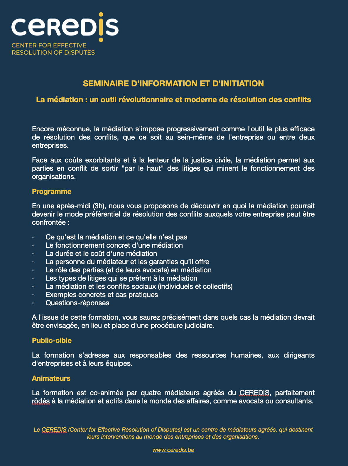 Semaine de la médiation pour les entreprises 2025 : suivez les workshops de CEReDis !